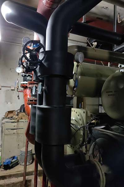 成都管道橡塑保溫施工,成都保溫工程,濤翔天公司承接橡塑保溫、鐵皮保溫、巖棉保溫。承接工廠、市政、商廈各類空調管道、消防管道、熱力管道、蒸汽管道、給水管道等成都管道保溫工程。下圖為管道橡塑保溫施工現場